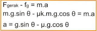 Dari rumus F gerak dan fg di atas dapat kita gunakan untuk mencari besarnya percepatan gerak benda :